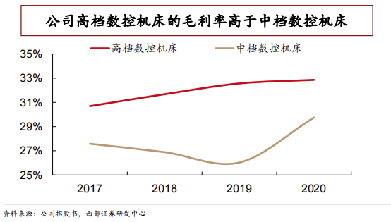 ➢ 公司高档数控机床毛利率高于中档数控机床。2017 年至2020年,公司高档数控机床毛利率水平分别为 30.69%、31.67%、32.56%、32.85%。