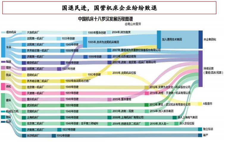 (2)格局:国产替代与“国退民进”同步进行,优质的民营机床公司有望脱颖而出,接力国营机床完成国产替代;