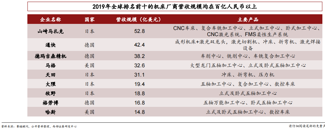 机床千亿级市场空间,德、日、美等制造业强国均孕育出营收百亿公司