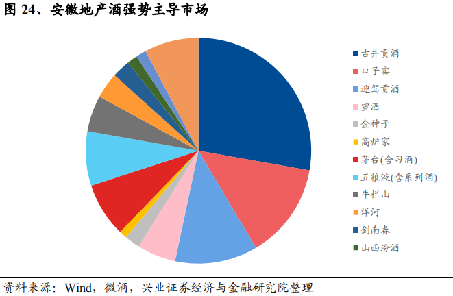⚫ 苏皖板块:品牌升级,营销见长。1)江苏白酒市场出厂口径约 400 亿,销售 口径约 550-600 亿,经济厚、酒价高、氛围浓,为全国白酒升级排头兵。安徽 比邻江苏,同为江淮浓香产区、经济往来密切,饮酒档次素来向江苏看齐,预 计白酒市场出厂口径容量从 2020 年的 270 亿提升至 2025 年的 350-400 亿。 2)江苏:本地“三沟一河”市占率达 40%,其中洋河、今世缘分别为 25%、 12%;当前苏酒主流价格带已升级至 300-500 元,次高端以上占比接近 50%, 外来品牌在高端价位优势突出,本地苏酒主导次高端及以下价位;洋河梦系 列、双沟协同高增,引领势能向上;今世缘 K 系稳增、V 系高增、省外拓展 打开增长空间。3)安徽:徽酒四朵金花市占率超 50%,其中古井市占率 28%; 当前徽酒主流价格带在 120-200 元,次高端以上占比仅 23%,古井通过古 20+ 强势崛起引领次高端发展,有望持续享受省内升级与集中红利,同时省外高 举高打预计将加速突破。